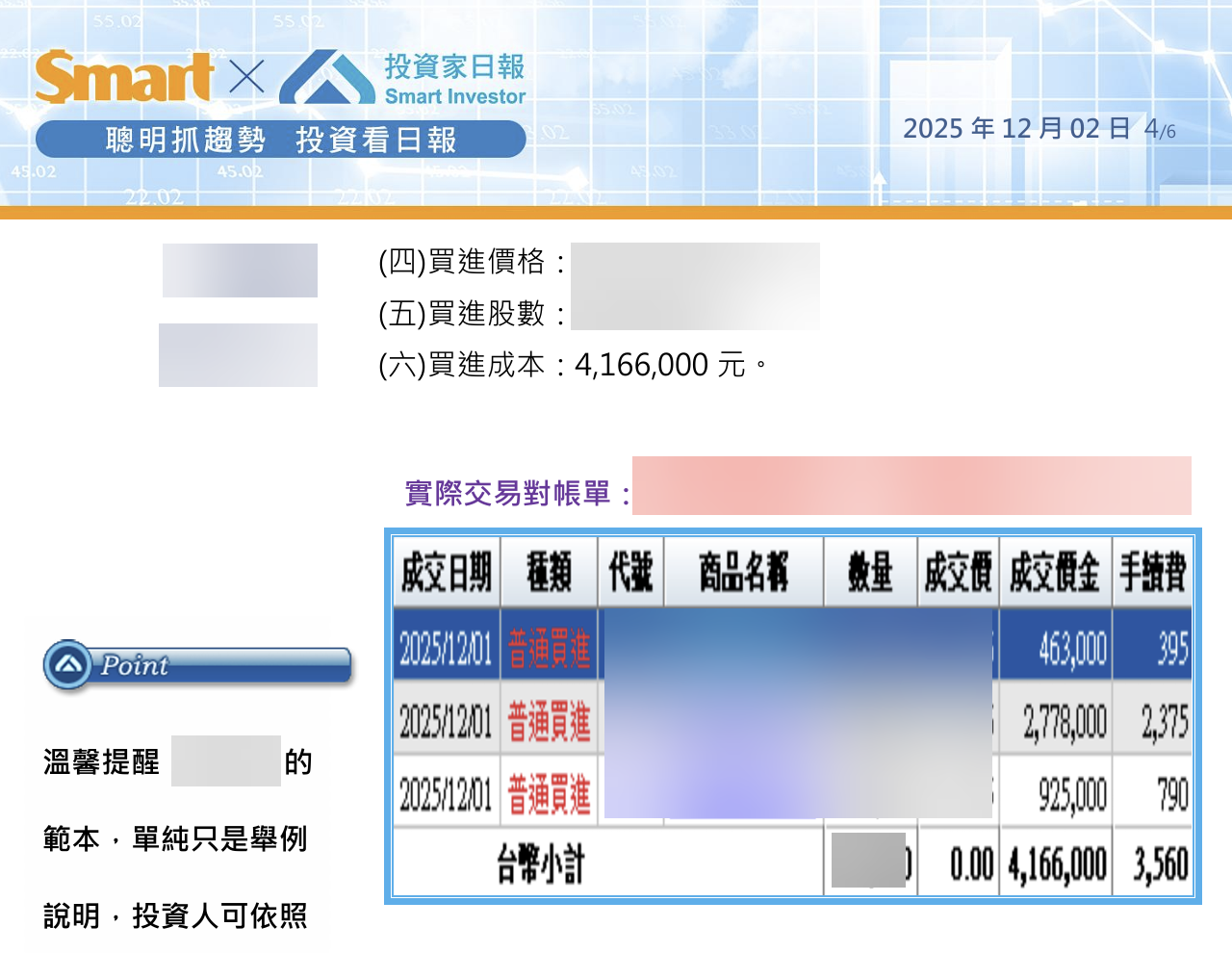 下圖表是實際股票的交易對帳單,其內容參考如下。