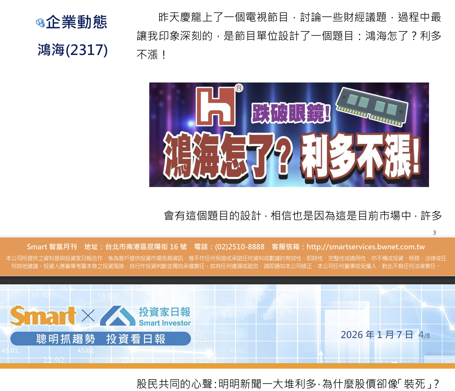 會有這個題目的設計,相信也是因為這是目前市場中,許多股民共同的心聲:明明新聞一大堆利多,為什麼股價卻像「裝死」?