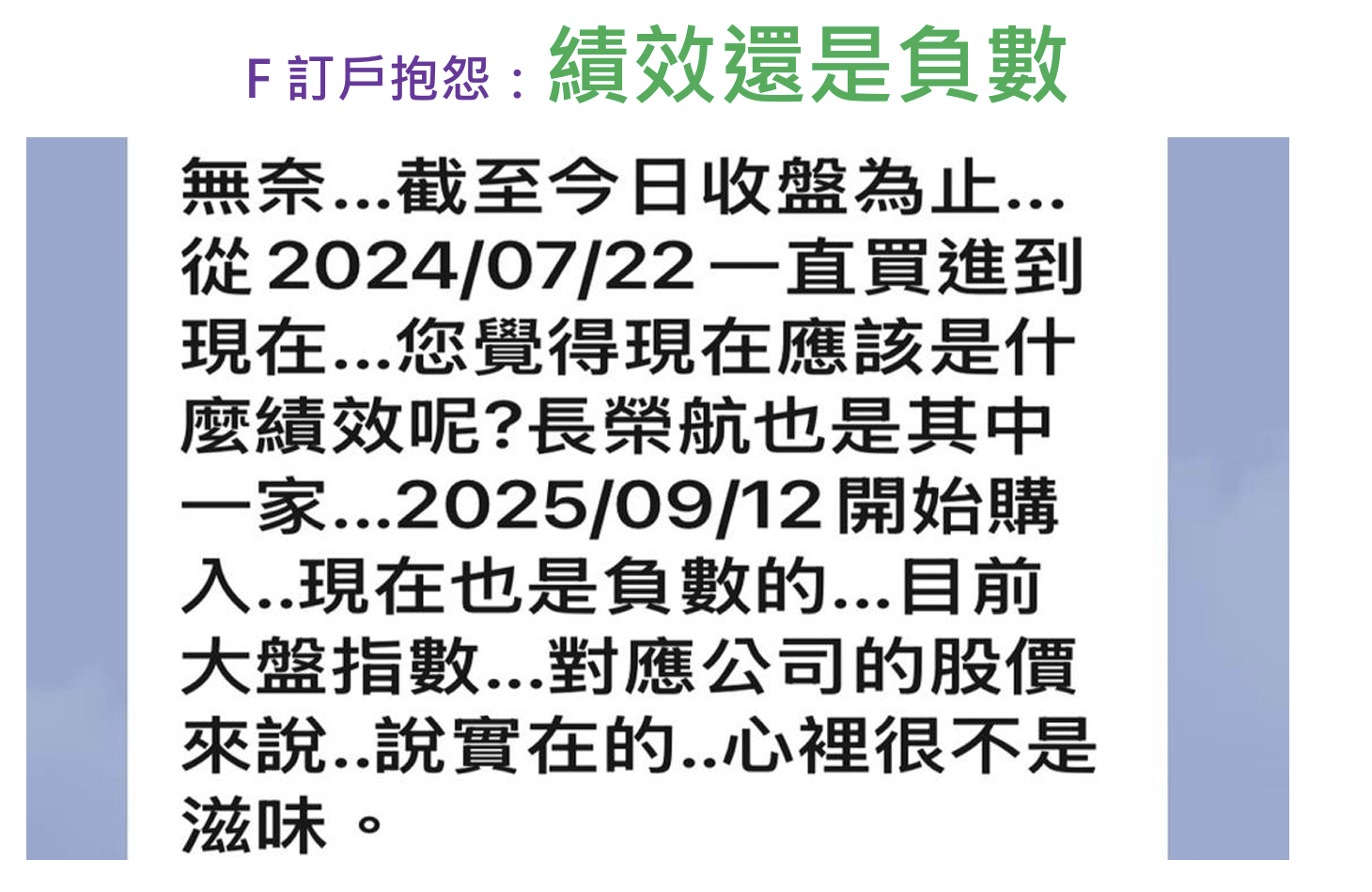 慶龍能理解上述這位訂戶的心情,尤其是在已經持續投入、也願意學習,但帳面績效卻不如預期時,失落感一定會出現,這是很人性的反應;尤其在這段期間,日報所呈現的某些內容,看起來又像是「成果展」時,內心的失落感,往往會更加明顯。