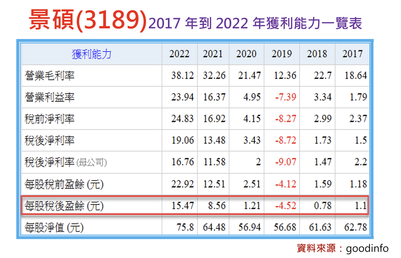在經歷了前一段慘痛的教訓之後,景碩2019年與2020年的資本支出明顯保守許多,佔股本比率分別下降至83%與62%,然而,世事難料,IC載板的需求受惠「在家上班」的疫情紅利,出現了大爆發的成長,供不應求的產業狀況,不僅讓景碩的獲利扶搖直上,2021年EPS達到8.56元,2022年EPS跳升到15.47元,更讓CEO做出瘋狂大擴產的決定。