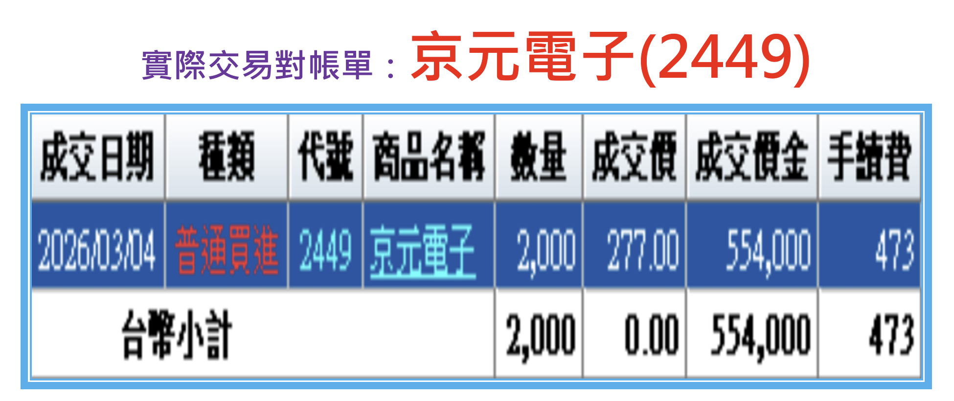 當天京元電子(2449)股價收在278元
