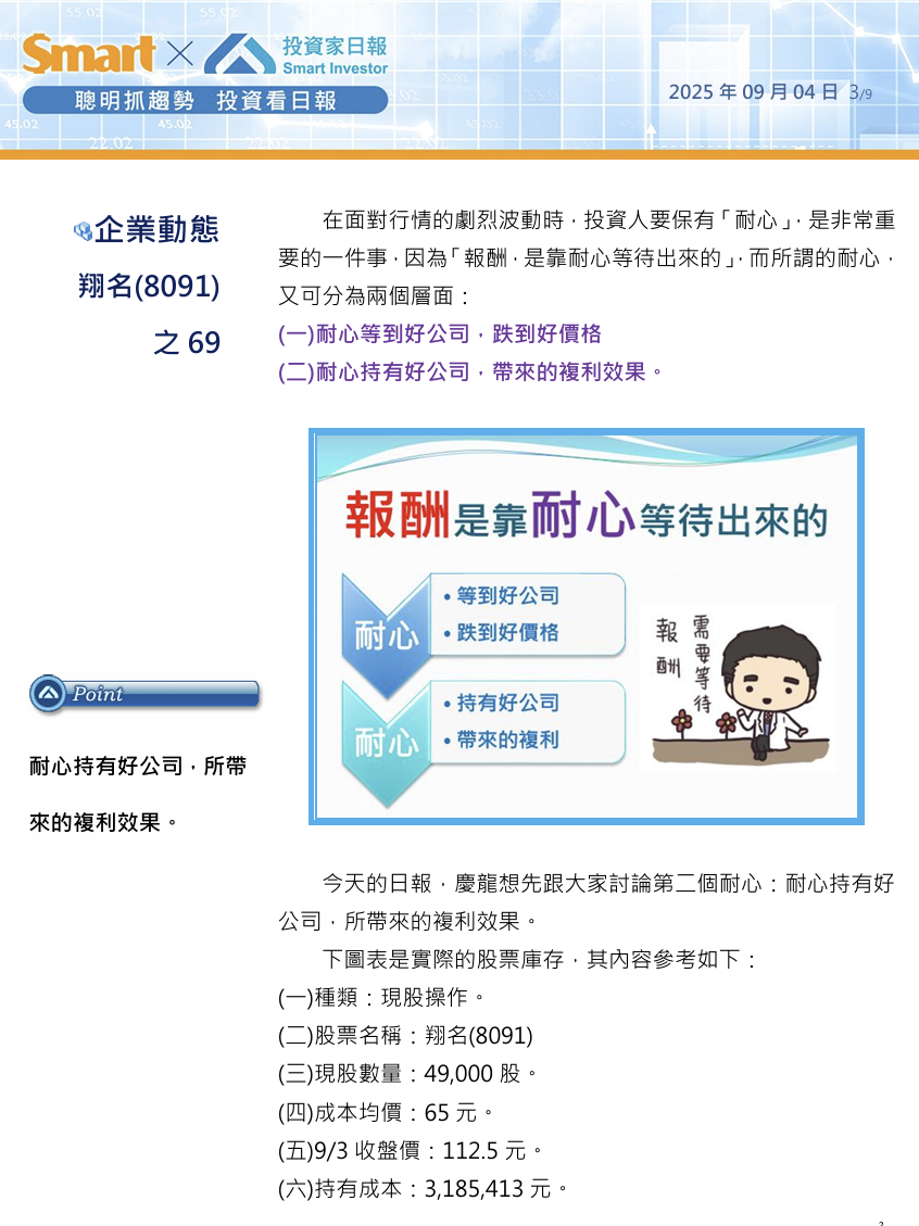 今天的日報,慶龍想先跟大家討論第二個耐心:耐心持有好公司,所帶來的複利效果。