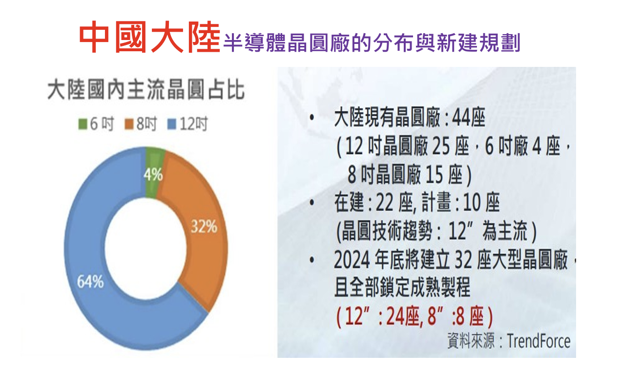 不過若以全球2023年合計有180座12吋晶圓廠的數量規模來看,2024年中國新增24座12吋晶圓廠的幅度僅達到13%,此外,若把時間拉長到2027年,由於全球12吋半導體晶圓廠的數量將成長到233座,因此2024年中國大陸新增的半導體晶圓廠數量,也都在有點高,但又不至於太高的成長範圍內。