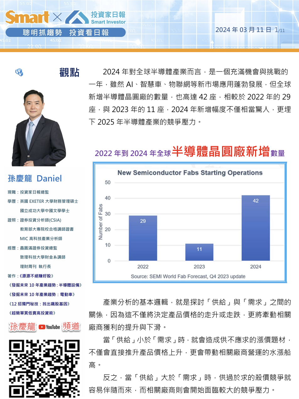 產業分析的基本邏輯,就是探討「供給」與「需求」之間的關係,因為這不僅將決定產品價格的走升或走跌,更將牽動相關廠商獲利的提升與下滑。