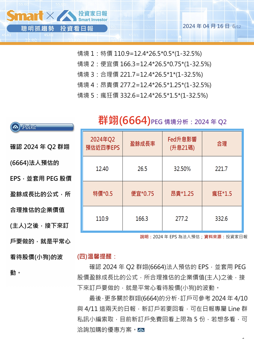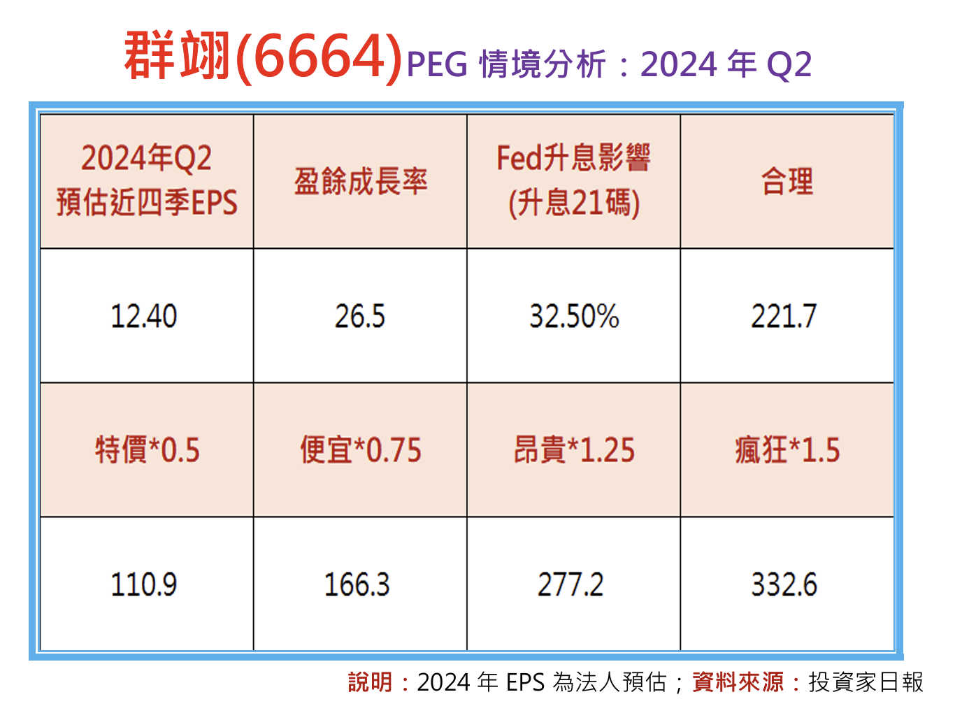 確認2024年Q2群翊(6664)法人預估的EPS,並套用PEG股價盈餘成長比的公式,所合理推估的企業價值(主人)之後,接下來訂戶要做的,就是平常心看待股價(小狗)的波動。