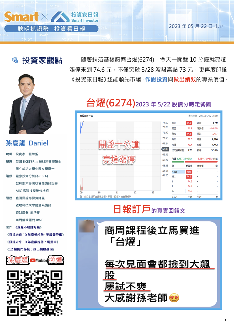本文From《投資家日報》2023年5/22