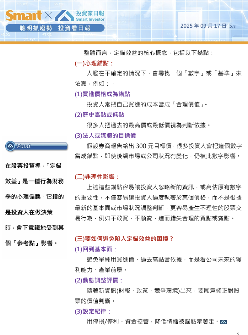 投資心理學」的議題,其實有一個正式的名字,稱之為:定錨效益(Anchoring Effec