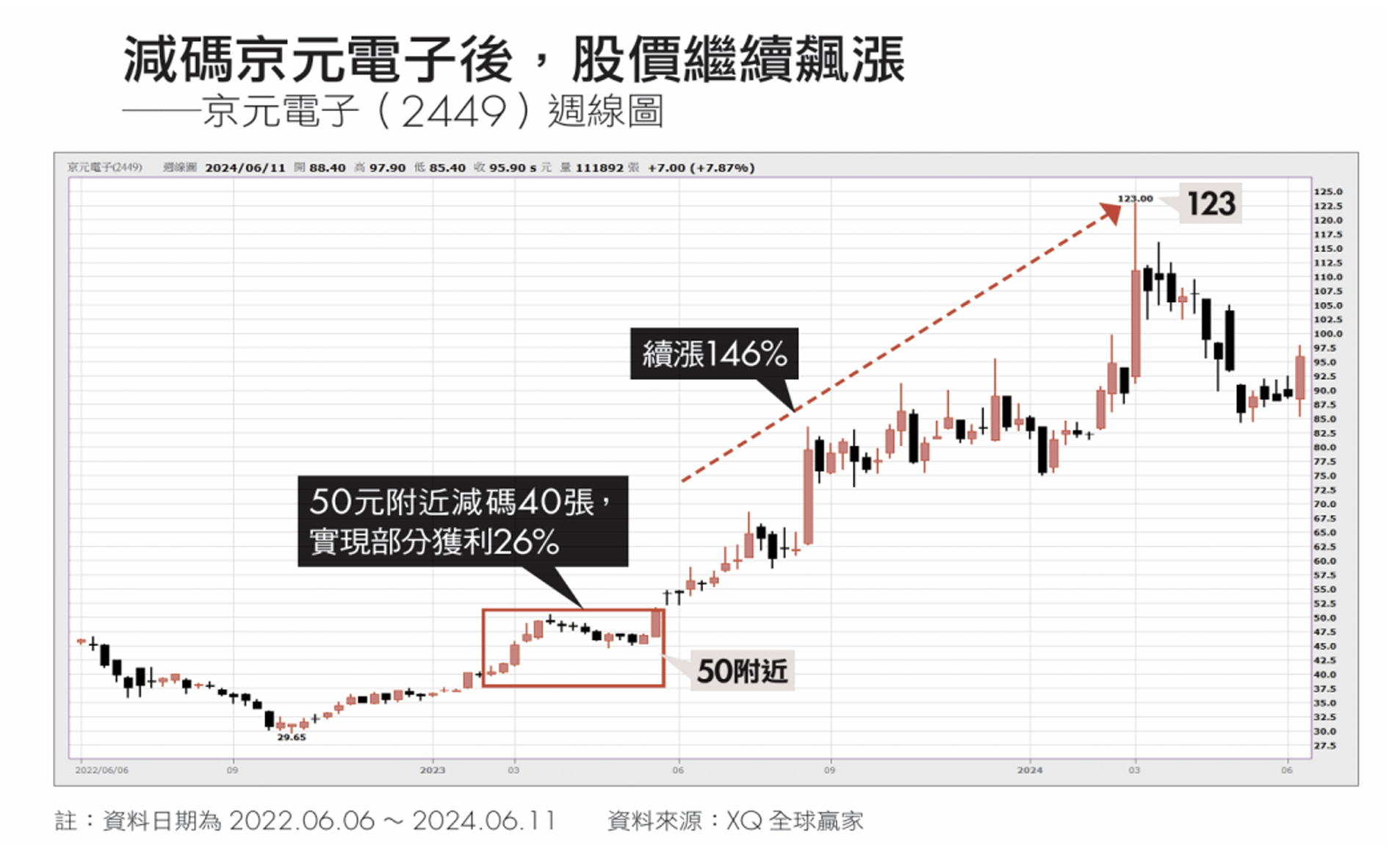 息,一共收進了超過40萬元的已實現獲利,總報酬率達26%,卻也少賺了後續京元電子股價持續上