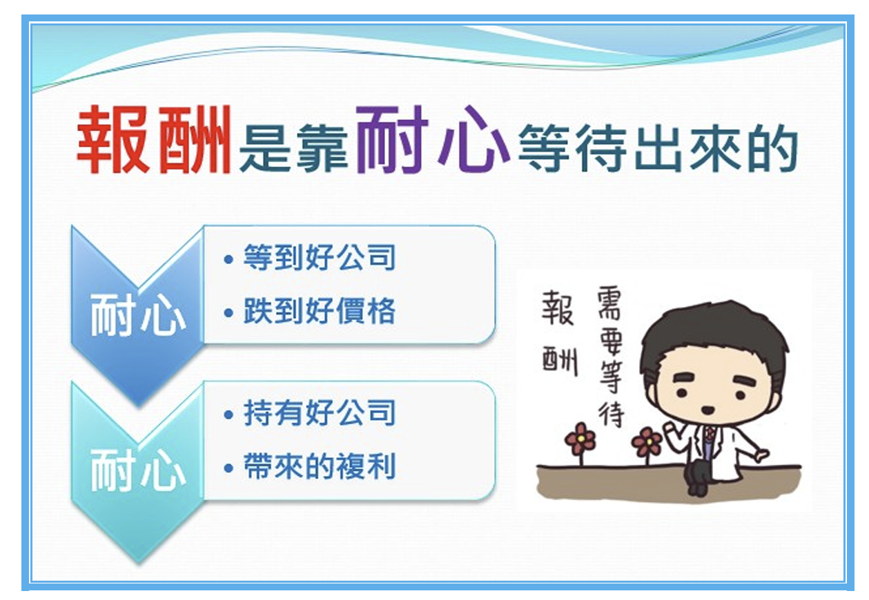 的劇烈波時,投資人要保有「耐心」,是非常重要的一件事,因為「報酬,是靠耐心等待出來的」,而