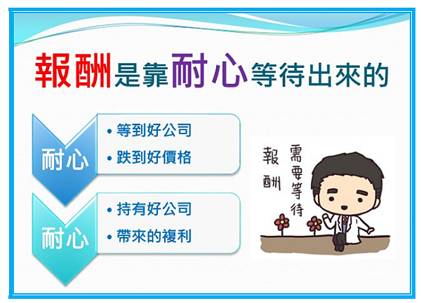 的劇烈波時,投資人要保有「耐心」,是非常重要的一件事,因為「報酬,是靠耐心等待出來的」,而