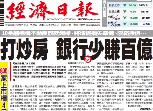 打炒房 銀行恐少賺百億 + 現在少賺總比以後代誌大條好