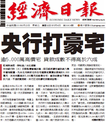 央行打豪宅 + 張金鶚:手段太溫和,限貸令不痛不癢