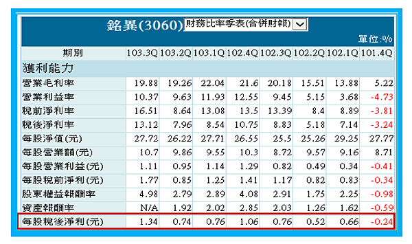 3060)2014年Q3季報的內容,可從兩個部分來討論:(平心而論,筆者乍看到銘異Q3所公