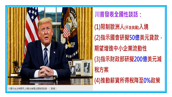 2000%川普的談話,引發金融市場更大的恐慌,繼3/11美國道瓊指數大跌1,464點之後,