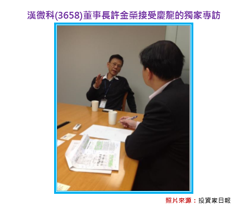 家專訪漢微科(3658)董事長許金榮分析內容。「漢民是在1977年成立,主要業務是代理世界