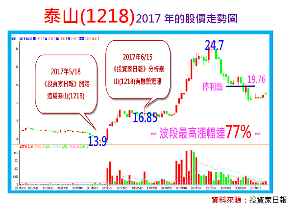 就是愛飆股:泰山(1218)3個月獲利42%!