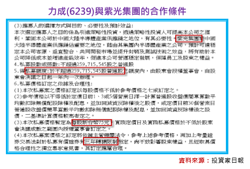 的情況下,力成年宣布中國大陸紫光集團將透過私募方式,以每股元價格入股力成股份,雖然可獲得億