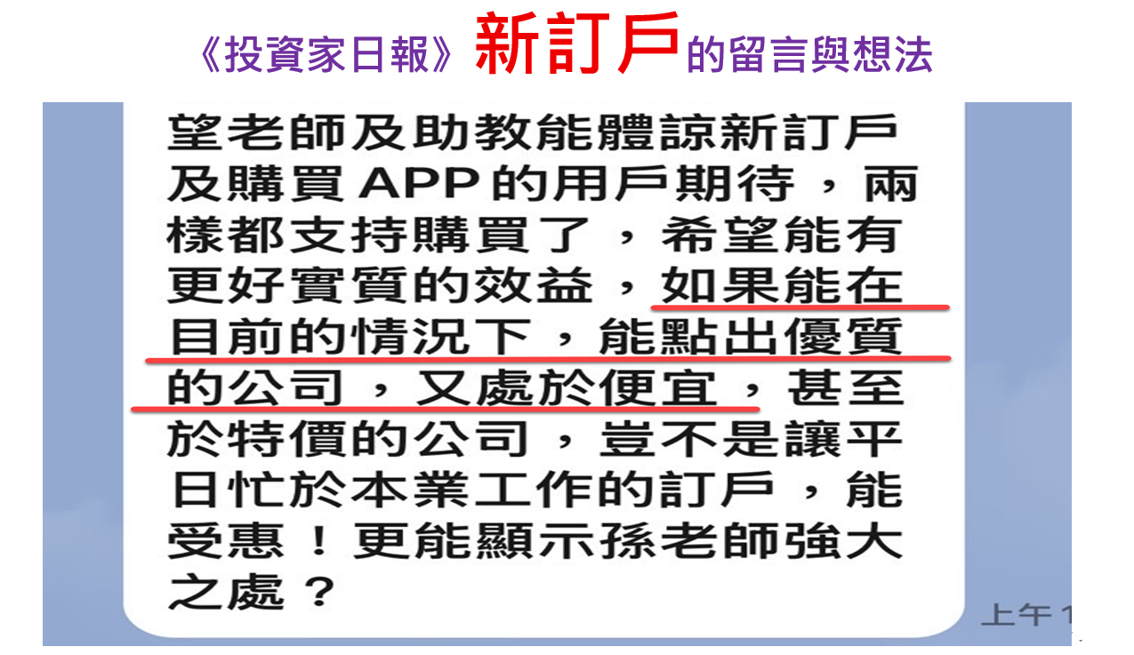 陸續看到了一些新加入《投資家日報》的訂戶留言,提出了幾個很有意思、也值得深思的反饋。 有同